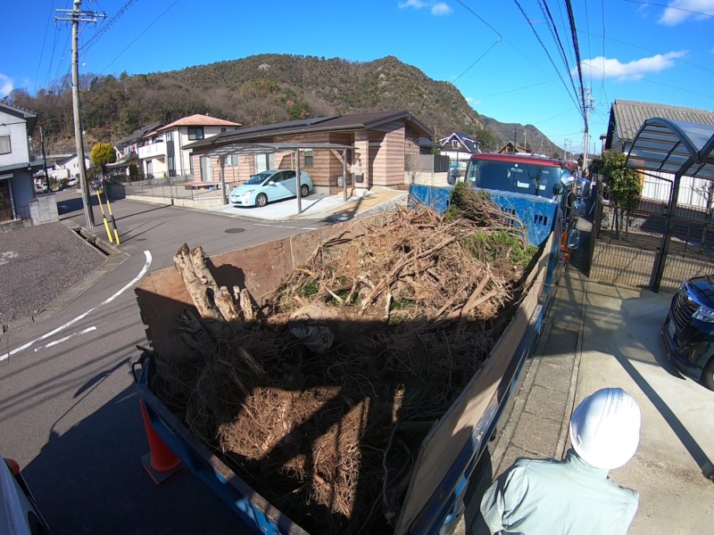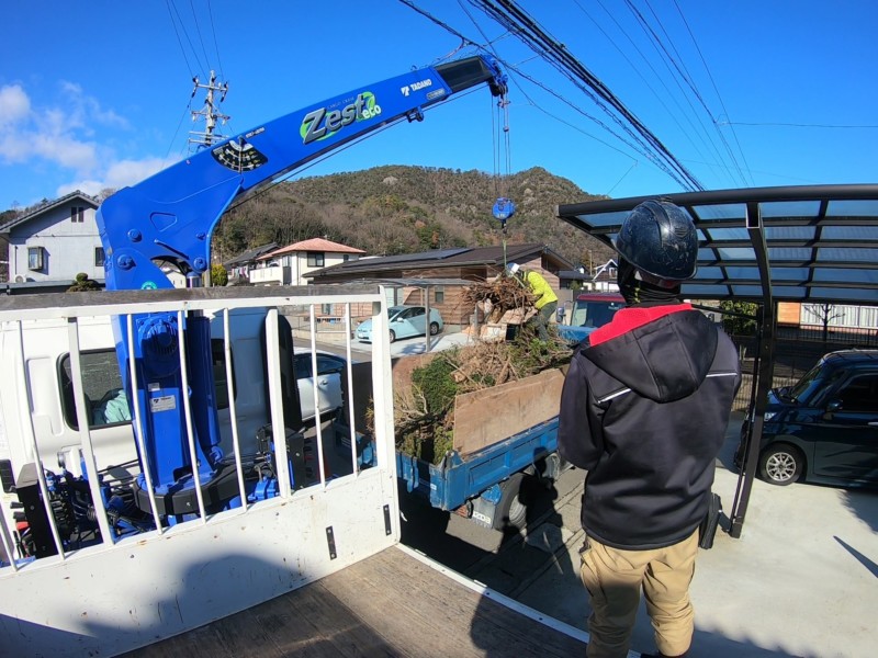 ![【岐阜県関市】クレーンを使って庭石と庭木を撤去処分して更地にする]()