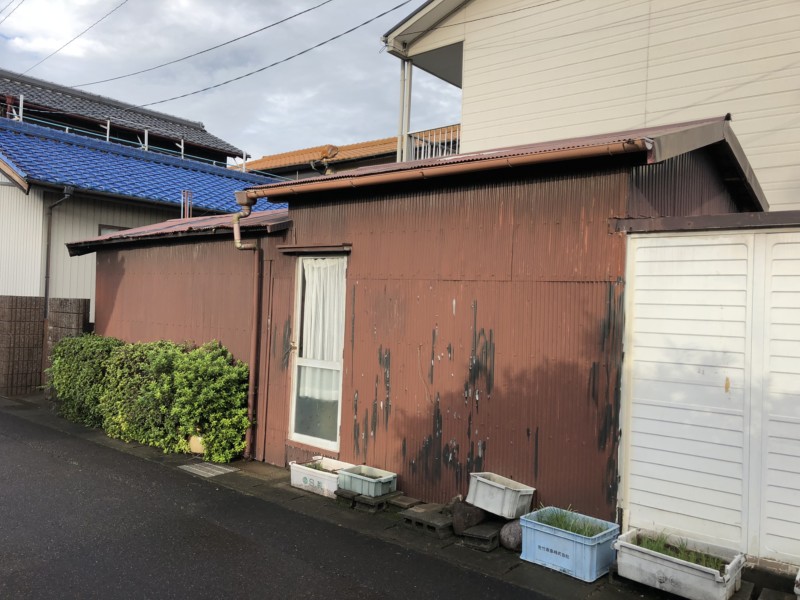 建物構成は、金属製ガレージと木造平屋です。