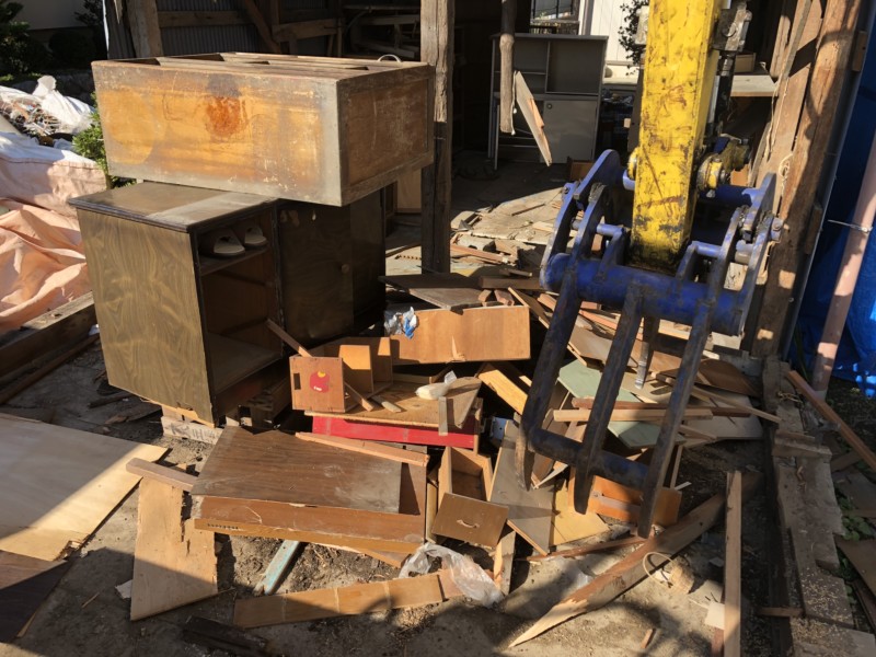 家具などは重機で壊して、積み込んでいきます。