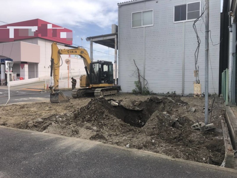 いよいよ重機の搬入です。建築廃材を仕分けしながら、取り壊していきます。トラックに廃材を積み込んで、搬出し終えたら、コンクリート基礎の撤去です。地中に残置物が残らないように、しっかり探って掘り起こします。解体後は、コンクリートや木屑などの廃材を撤去し、綺麗に整地まで終えたら完工です。