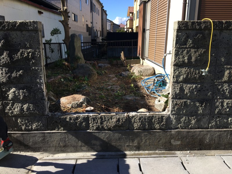 庭解体、クレーン撤去、ブロック・目隠しフェンス設置 |