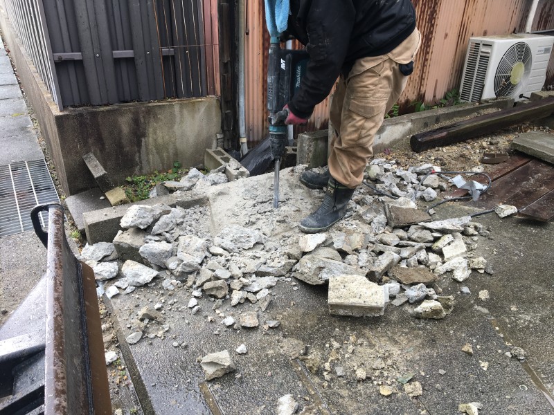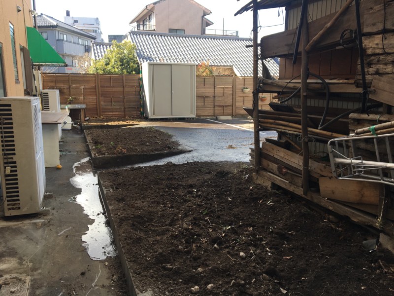 庭解体、砕石敷き |