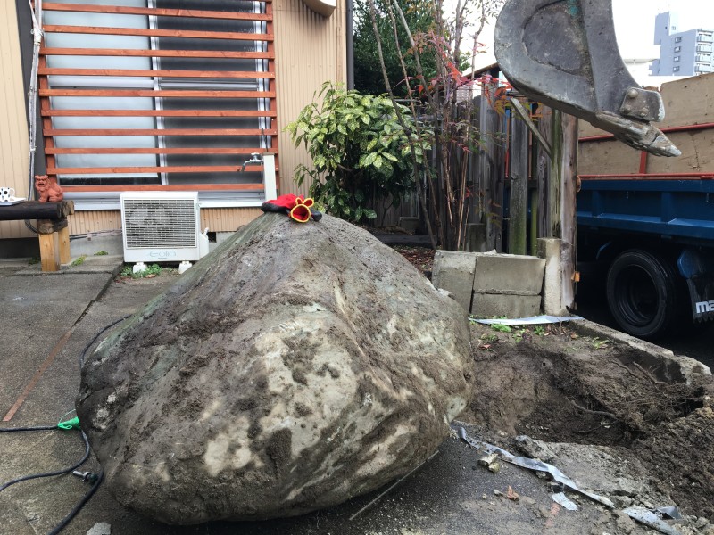 庭石を人力で引っ張りだして撤去する【狭い場所×重機が入らない】