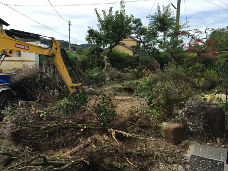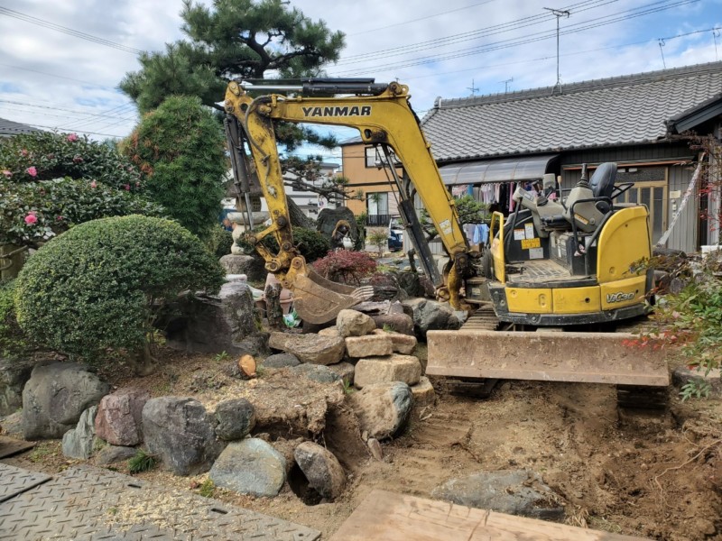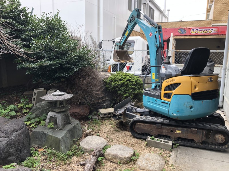 お庭の庭木の伐採と庭石の撤去【マメ重機で対応】