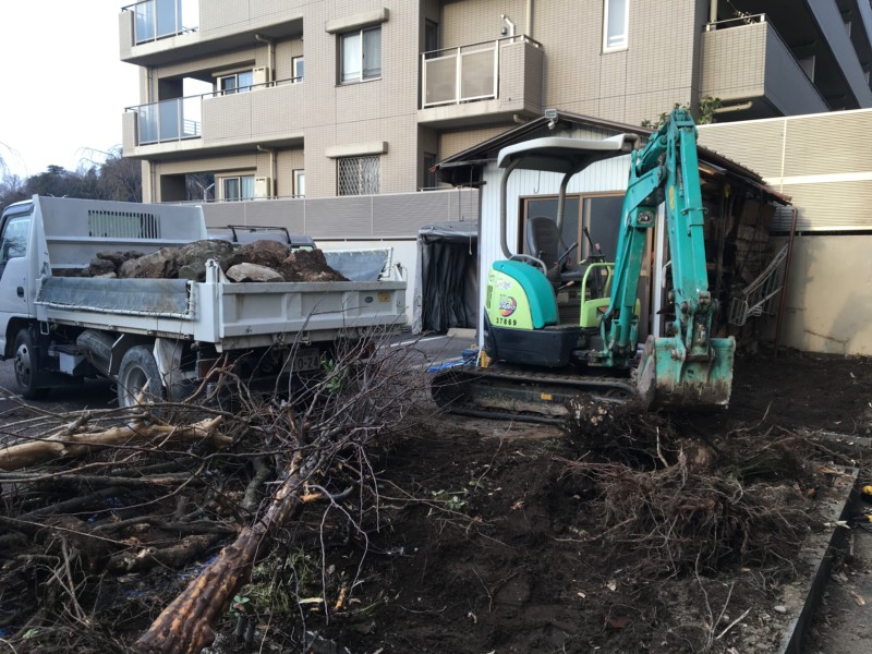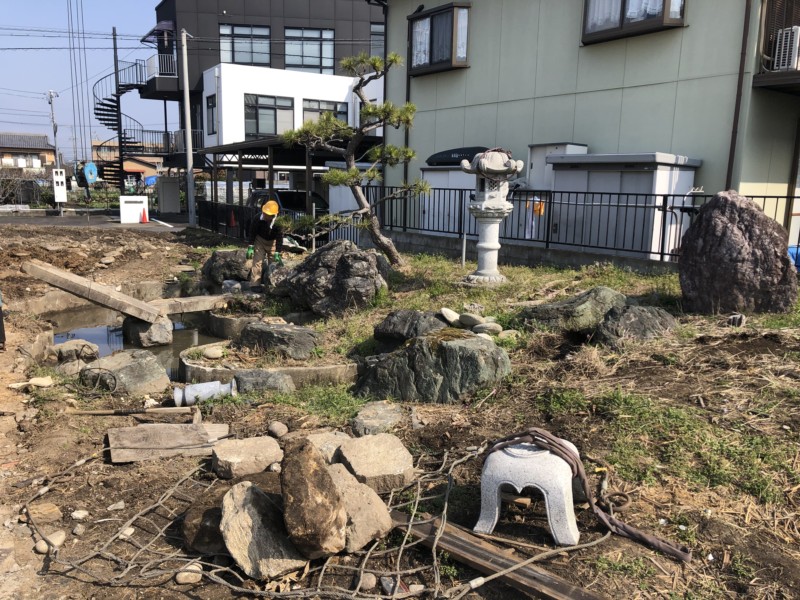 広いお庭の庭石と庭木をすべて撤去して更地にする