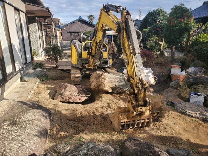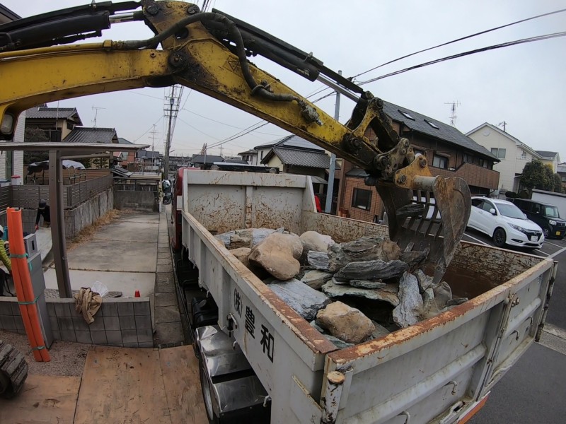 重機をつかって庭石を撤去処分する費用事例集