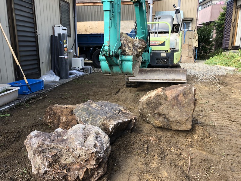 逆に重機やクレーンが全く入らないような場所にあれば、手作業になります。庭石はとても重いので、1つの庭石を引きずり出したり、割ったりするのは時間がかかります。その分コストもかかります。