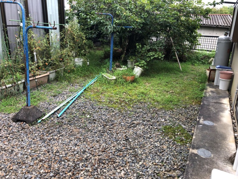 「荒れたお庭をキレイに戻したい」というご相談いただきました。お庭の解体工事と防草シートと砂利敷きをして、今後もお手入れが楽になるように雑草対策を施しました。見違えったお庭にお客様もご満足の様子でした。