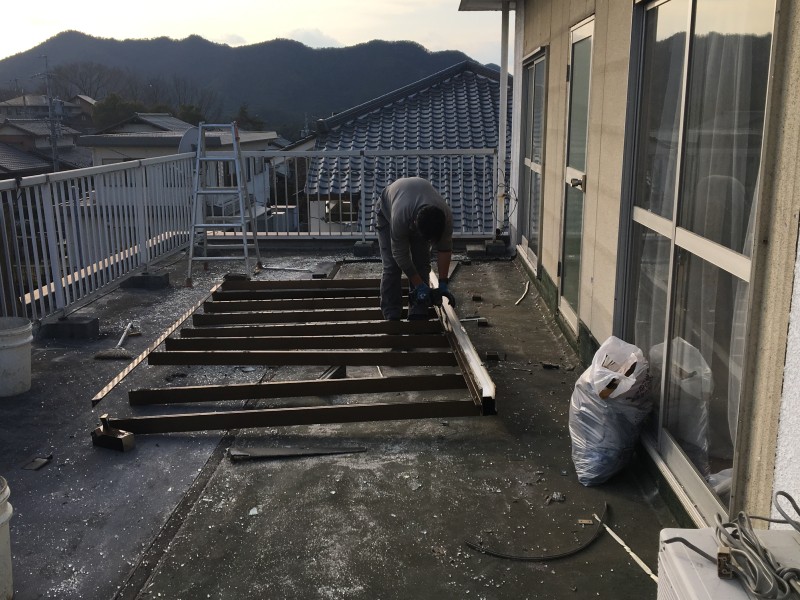 現場は閑静な住宅地にあり、テラスは2階のベランダに設置されておりました。