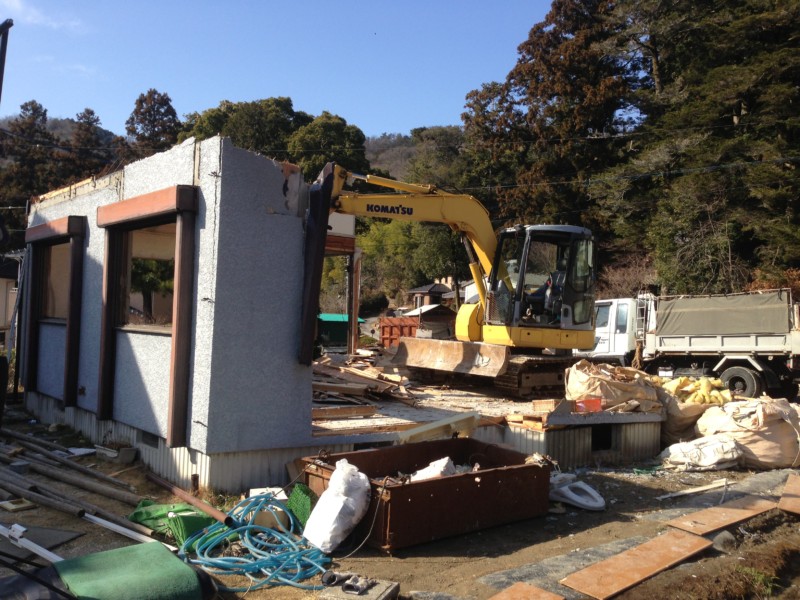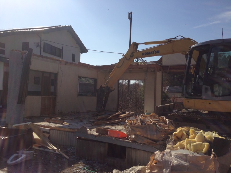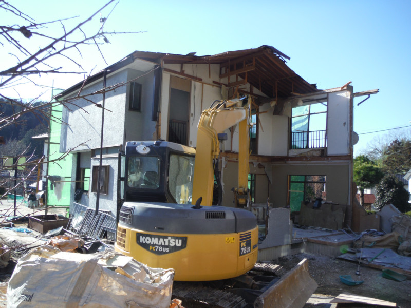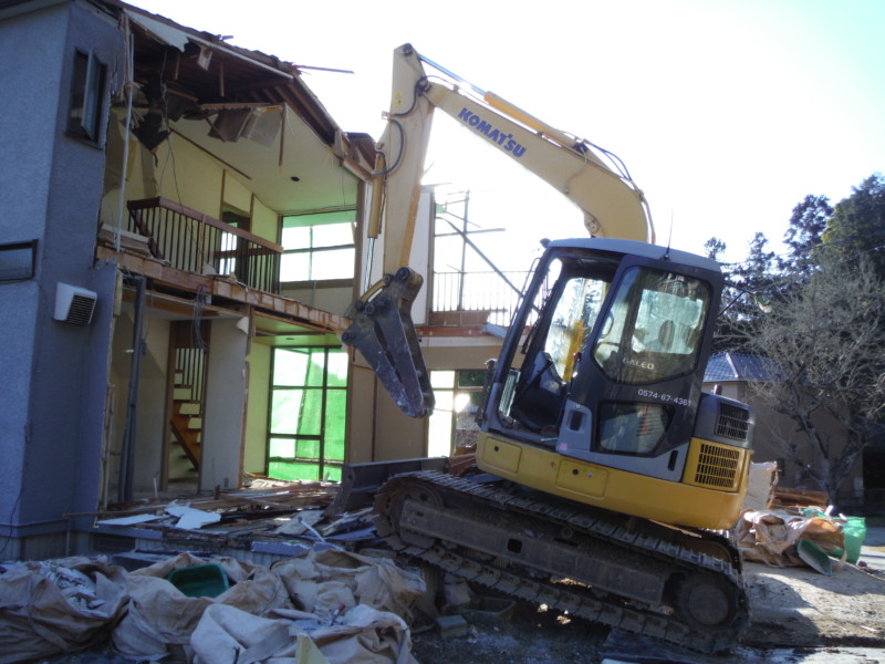 重機を使うと解体作業が早く進みます。すぐに1階部分の解体作業に入りました。