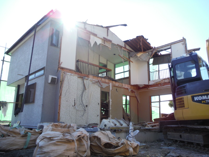 2階建て住宅の場合、現場によっては手で壊さなければならないのですが、この現場は重機が自由に使える周辺環境のため一気に作業を進めることが出来ました。