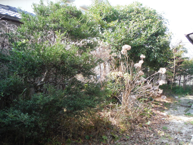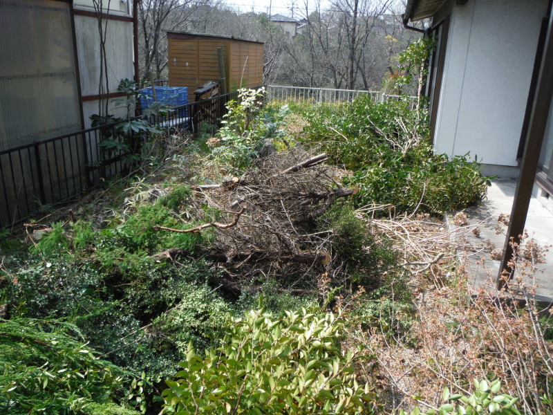 現場は樹木が長い間放置していた結果、お庭やお家の周囲が荒れ果てておりました。