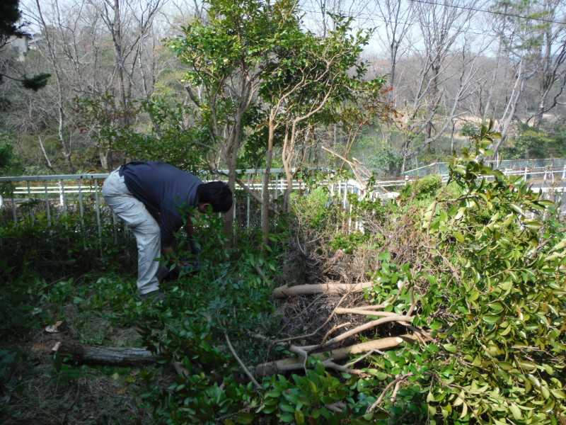 重機が入らない現場のため、すべて手作業で伐採していきます。